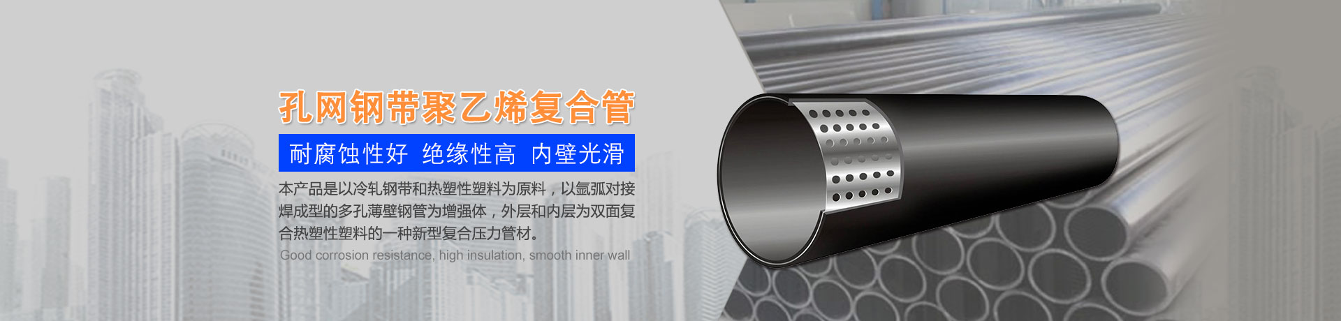 我們主要生產銷售:鋼絲網骨架復合管、鋼絲網骨架聚乙烯復合管、孔網鋼帶聚乙烯復合管、鋼骨架聚乙烯塑料復合管、電熔管件、HDPE中空壁纏繞管、HDPE內肋增強螺旋波紋管、HDPE結構壁增強B型管等一系列產品。復合管以其特有的防腐蝕、耐磨、耐高溫、抗嚴寒、耐壓、抗蠕變、穩定性好、安裝方便等特點,逐步取代各類金屬管件和塑料管件,被應用于消防、石油、化工、供水、采礦、海水輸送等領域...